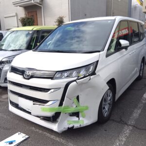 2026.03.14 トヨタノア フロント回り修理 ノアのフロント回り修理です。 バンパーとグリル以外にヘッドライト左右、一部の配線も交換、フェンダーとボンネットの鈑金が必要でした。 各部分を鈑金して塗装を行います。 各部品を組み付けて磨いて完成です。 保険修理で730,000円でした。