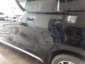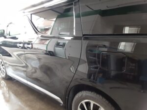 2026.03.02 トヨタ アルファード 左リヤドア交換 トヨタ アルファードの左リヤドア交換です。 擦り傷ではなくヘコミですので交換となります。 ドアの塗装に加えてフロントドアとクォーターパネルをボカシ塗装します。 磨いて完成です。 お客様の自費 217,000円の修理です。