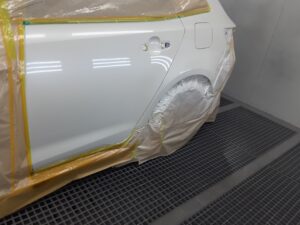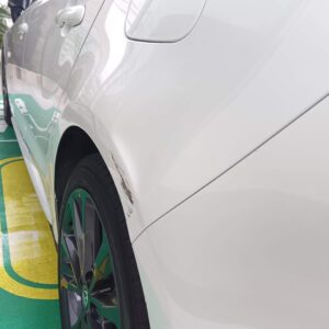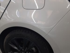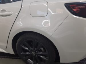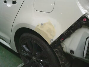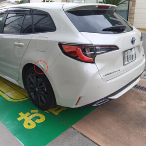 2026.02.27 トヨタ カローラツーリング 左クォーターパネル修理 カローラツーリングのクォーターパネル修理です。 場所はここ↓↓ パネルを鈑金してパテで仕上げます。 塗装はリヤドア、リヤバンパ-までボカシ塗装をします。 きれいに治りました。 自費修理 133,000円です。