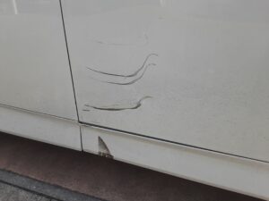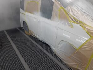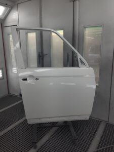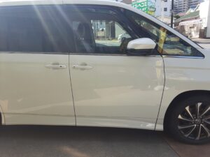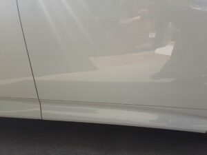 2026.03.07 トヨタ ノア フロント右ドア交換 ノアのフロント右ドア、ドアマッドガード(ドアの下側の別部品)交換です 新品ドアとフロントフェンダー・リヤドアも塗装をします(3コートパール塗装) 3コートパール塗装は、下地(カラーベース)、パール層、クリア層の3層塗装なのでお高くなります ドアマッドガードを取付けて完成です 保険修理 31万円の修理です